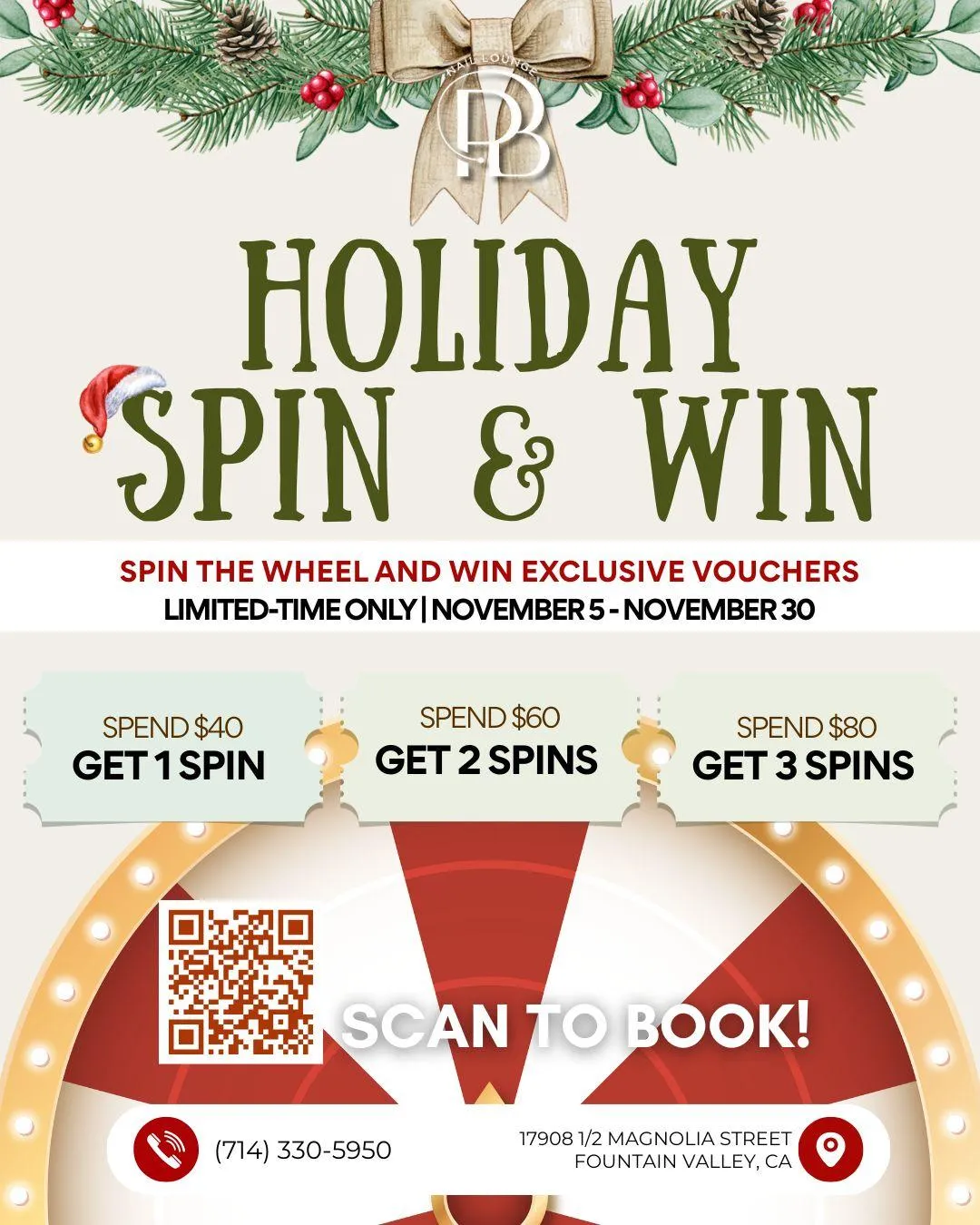 Join The Holiday Spin & Win For Special Prize! Book Your Appointment Now!